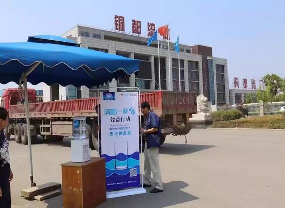 他們用汗水,方便了市民的生活、他們用汗水,洗去了城市的塵埃,因?yàn)橐獔?jiān)守崗位,甚至有時(shí)無法在口渴時(shí)喝一杯涼水,也無法在酷暑難耐時(shí)稍作休息。炎炎夏日,一杯清水對坐在辦公室的市民來說,是微不足道的,但是對高溫酷暑下的為戶外高溫作業(yè)人員來說,喝一杯清水在繁忙的一天中卻顯得如此奢侈。7月25日,共青團(tuán)銅陵市委、銅陵日報(bào)社聯(lián)合發(fā)起"請喝一杯水"愛心公益活動(dòng)后,我公司立即響應(yīng)號召,在我公司大門口設(shè)立愛心崗?fù)?愛心休息站",為在烈日下工作的人們提供夏季的一絲涼意。