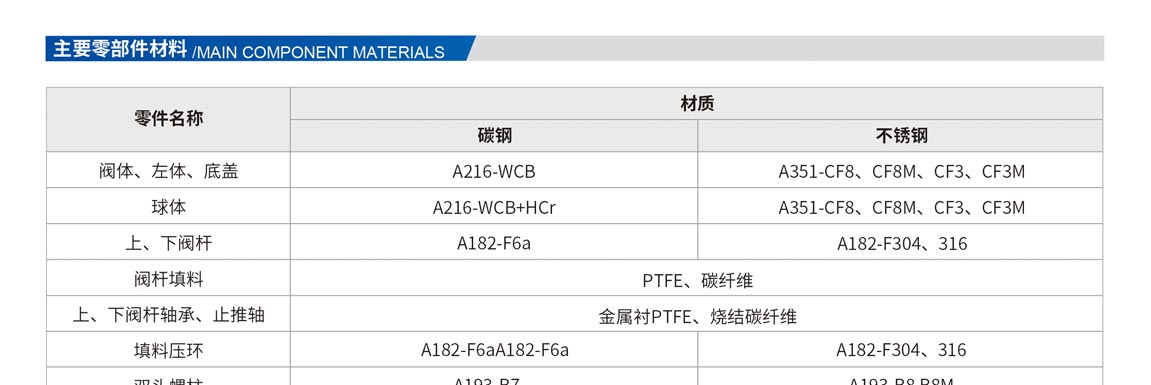 固定球閥有二片式和三片式兩種閥體結構,中法蘭用螺栓連接,密封采用增強PTFE鑲入不銹鋼圈內,鋼圈后部沒有彈簧閥座緊貼球體,保持密封。上下閥桿均設有PTFE軸承,減少磨擦,操作省力。