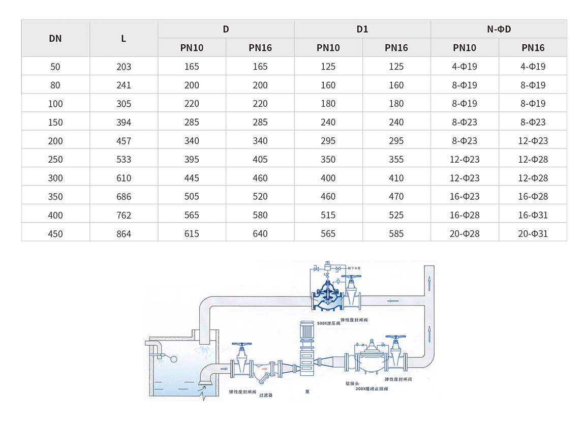 500X泄壓/持壓閥主要用于消防或其他供水系統(tǒng)中,以防止系統(tǒng)超壓或維持消防供水系統(tǒng)的壓力。消防泵關(guān)閉后還可以減小水錘的沖擊。也用于大型供水系統(tǒng)的水錘消除裝置,并且閥門控制系統(tǒng)的進(jìn)口處裝有一個(gè)自清潔濾網(wǎng),利用流體特性,使比重較大、直徑較大的懸浮顆粒不會(huì)進(jìn)入控制系統(tǒng),確保系統(tǒng)循環(huán)暢通無阻,使閥門能安全可靠地運(yùn)行。系統(tǒng)動(dòng)作平穩(wěn)、強(qiáng)度高、使用壽命長適用于DN600口徑以下的管道。